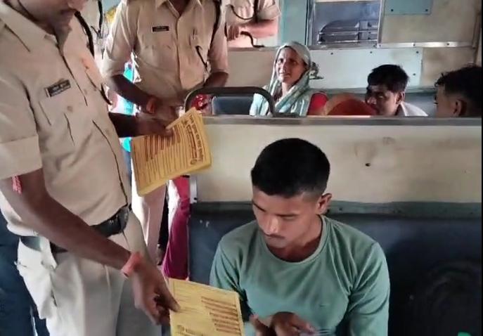 जागरूकता अभियान के दौरान आरपीएफ उपनिरीक्षक विवेक कुमार साथ में उपनिरीक्षक अशोक कुमार यादव प्लेटफार्म ऑन ड्यूटी स्टाफ के साथ मिलकर समस्तीपुर जंक्शन में आने जाने वाली गाड़ियों व प्लेटफार्म पर यात्रियों के बीच पम्पलेट बांट रहे हैं.
