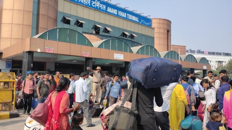 आनंद विहार रेलवे स्टेशन छठ को लेकर रेलवे स्टेशन पर भारी भीड़ दिखने लगी है. नई दिल्ली रेलवे स्टेशन से लेकर आनंद विहार रेलवे स्टेशन तक लोगों का हुजूम पहुंच रहा है. लोगों की भीड़ को देखते हुए रेलवे ने भी तमाम तैयारियों की हैं लेकिन रेलवे स्टेशन के बाहर आपको तमाम लोग ऐसे मिल जाएंगे जो अपनी यात्रा को लेकर हैरान परेशान हैं. किसी की सीट कंफर्म हो चुकी है तो कोई अब भी टिकट कंफर्म होने का इंतजार कर रहा है.