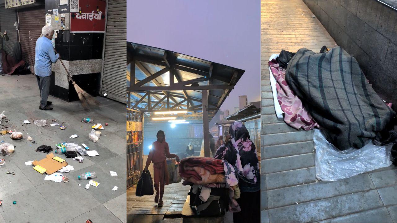 करीब 6:40 बजे सबवे में हलचल शुरू हो गई. सफाईकर्मी आने वाले थे, लोगों को हटने के लिए कहा गया. कंबल समेटे जाने लगे. माएं बच्चों को जगाने लगीं. रिपोर्टर ने देखा कि, एक छोटी बच्ची, जो गहरी नींद में थी, डरकर उठी और रोते हुए एक महिला से चिपक गई. कुछ देर में सामने से आवाज आती है 'अपना सामान समेटो और यहां से हटो.' उस समय तापमान करीब 7 डिग्री था.