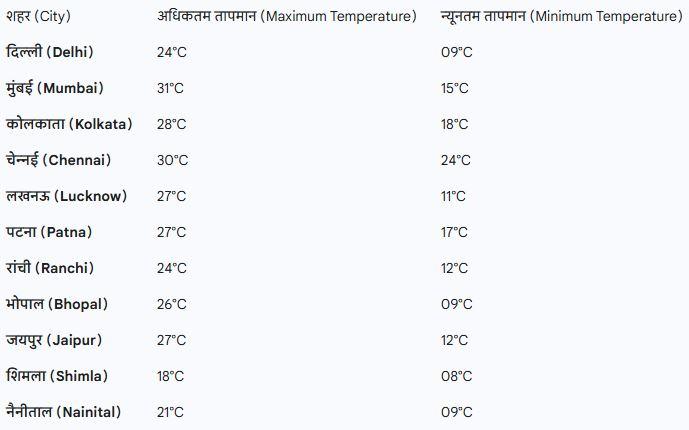 राजधानी दिल्ली का बात की जाए तो दिल्ली में आज (30 नवंबर) से ठंड की रफ्तार और बढ़ने वाली है. न्यूनतम तापमान गिरकर 7 डिग्री तक पहुंचने की संभावना है. कोहरे की बात करें तो इस साल अब तक एक भी दिन कोहरा नहीं पड़ा है. विजिबिलिटी अभी तक 1000 मीटर से कम नहीं गई है. वहीं प्रदूषण के कारण भी राजधानी का बुरा हाल है. 1 दिसंबर की सुबह भी कई इलाकों में AQI का स्तर काफी खराब पाया गया.