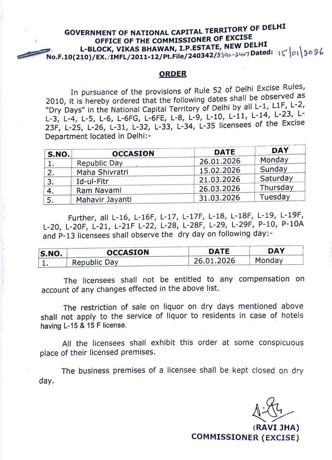 दिल्ली सरकार ने ड्राई डे को लेकर जो नया आदेश जारी किया है, उसमें होली का नाम नहीं है. इसका मतलब है कि त्योहार के दिन भी दिल्ली में अधिकृत शराब की दुकानें और ठेके सामान्य रूप से संचालित होंगे. सरकार के इस फैसले से उन लोगों को राहत मिली है जो त्योहार के मौके पर शराब खरीदना चाहते हैं. हालांकि प्रशासन की ओर से कानून-व्यवस्था बनाए रखने के लिए आवश्यक इंतजाम किए जाने की संभावना है, ताकि त्योहार शांति और सौहार्द के साथ मनाया जा सके.