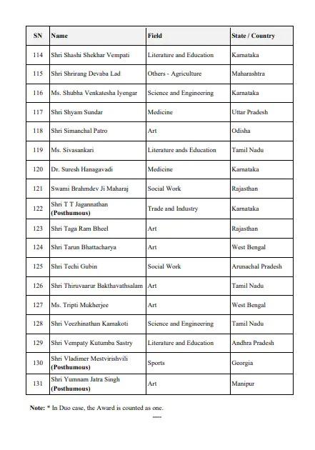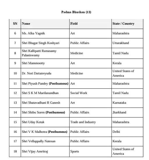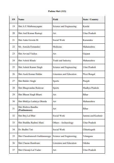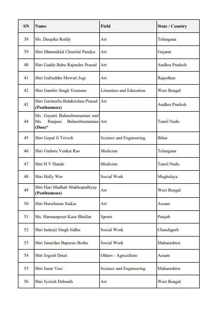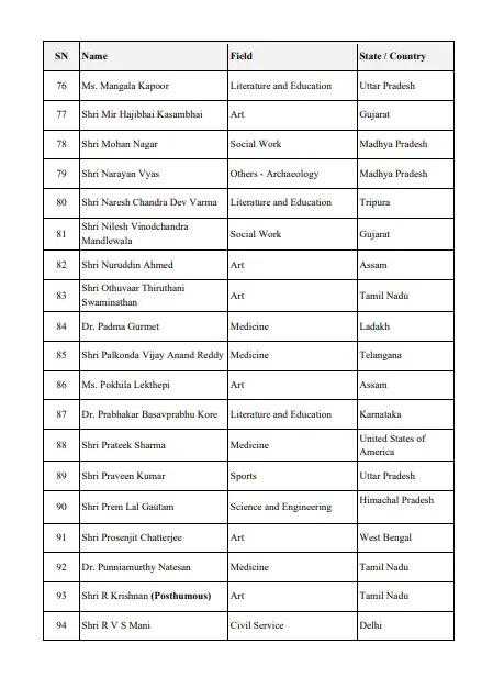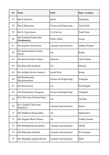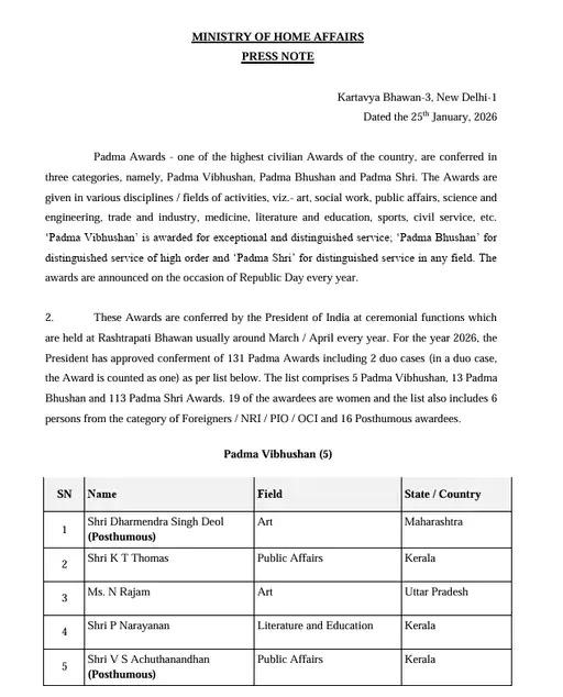 Padma Awards 2026