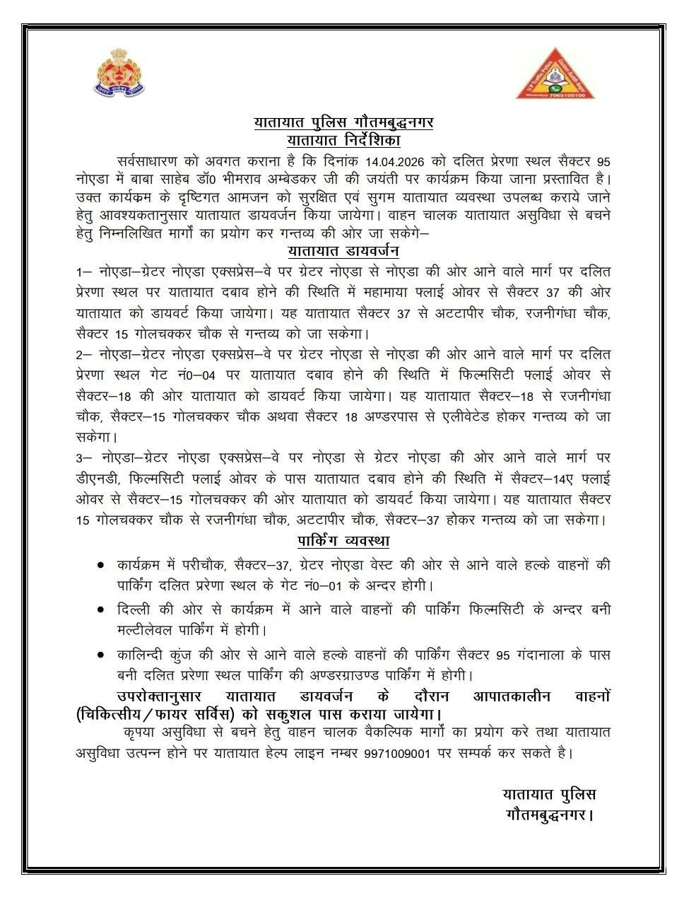 Delhi noida Ambedkar Jayanti Traffic Advisory 2026