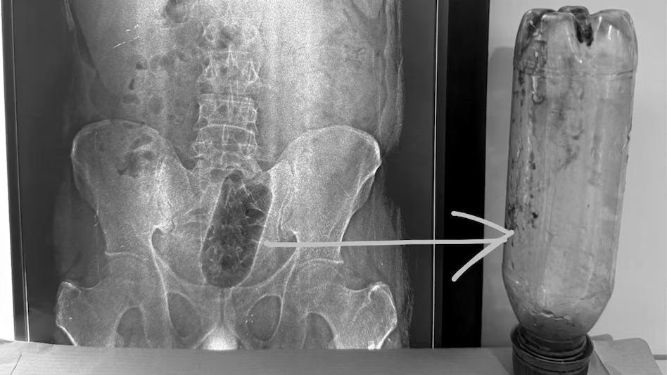 जानकारी के मुताबिक, साकेत कॉलोनी निवासी युवक करीब 36 घंटे तक दर्द सहता रहा. जब तकलीफ ज्यादा बढ़ी तो वह अस्पताल पहुंचा. जांच के दौरान डॉक्टरों ने एक्स-रे कराया, जिसमें साफ हुआ कि उसके मलाशय के भीतर एक लीटर की प्लास्टिक बोतल फंसी हुई है. इसके बाद उसे तुरंत इमरजेंसी में भर्ती कर लिया गया.