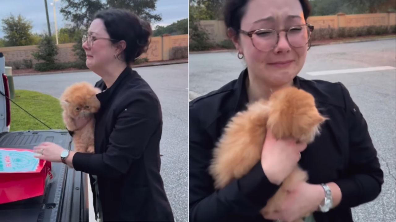 महिला का नाम एरिन है. एरिन ने अपने इंस्टाग्राम अकाउंट पर एक वीडियो शेयर किया, जो देखते ही देखते वायरल हो गया. वीडियो में दिखता है कि एरिन अपने घर से बाहर निकलती है और अपने पति की कार की ओर बढ़ती है. उनके पति ने बताया था कि कार की डिक्की में उसके लिए एक खास तोहफा रखा है. जैसे ही एरिन कार के पास पहुंचती है, डिक्की के अंदर से हल्की-सी आवाज सुनाई देती है. यह आवाज सुनते ही एरिन चौंक जाती है और हैरानी से अपने पति की ओर देखने लगती है. जब वह डिक्की खोलती है, तो अंदर एक लाल रंग का गिफ्ट बैग दिखाई देता है.