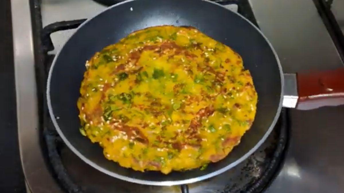 गैस पर नॉन-स्टिक पैन रखें और उसमें थोड़ा सा तेल या देसी घी डालें. तेल गर्म होने के बाद राई, सफेद तिल और करी पत्ता डालें. इन मसालों को हल्का सा चटकने दें. अब बैटर को पैन में डालें और इसे फैलाएं. गैस की फ्लेम को लो रखें, ताकि नाश्ता अंदर से अच्छे से पक जाए.
