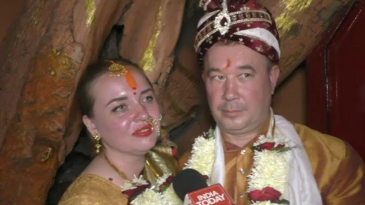 इस जोड़े ने अग्नि को साक्षी मानकर सात फेरे लिये. सात वचनों का संकल्प दोहराया और फिर जयमाल के बाद सिंदूरदान के साथ ये पवित्र बंधन पूर्ण हुआ. यह जोड़ा रूस का है. शादी के दौरान रूसी जोड़ा भारतीय परिधान था. इसके साथ ही जोड़े ने हर उस परंपरा को निभाया, जो सनातन विवाह की आत्मा मानी जाती है.