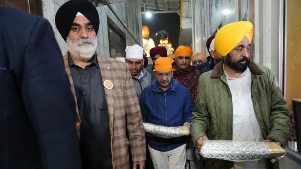 Arvind Kejriwal and Bhagwant Singh Mann आम आदमी पार्टी के राष्ट्रीय संयोजक अरविंद केजरीवाल और पंजाब के सीएम भगवंत सिंह मान श्री गुरु तेग बहादुर साहिब के 350वीं शहीदी दिवस के अवसर पर श्रीनगर के गुरुद्वारा श्री चट्टी पातशाही साहिब में आयोजित कीर्तन दरबार में शामिल हुए. इस दौरान अरविंद केजरीवाल ने कहा कि गुरु साहिब जैसा बलिदान इतिहास में नहीं मिलता है. हिंदू धर्म को बचाने के लिए श्री गुरु तेग बहादुर साहिब ने दिल्ली के चांदनी चौक में अपना सर्वोच्च बलिदान दे दिया. उन्होंने कहा कि बुधवार को श्रीनगर से यात्रा रवाना होगी और 22 नवंबर को आनंदपुर साहिब पहुंचेगी. सभी से अपील है कि पंजाब सरकार द्वारा श्री गुरु तेग बहादुर साहिब के 350वीं शहीदी दिवस पर आयोजित कार्यक्रमों में ज्यादा से ज्यादा लोग शामिल हों. इस अवसर पर पंजाब सरकार की पूरी कैबिनेट समेत अन्य गणमान्य लोग मौजूद रहे.