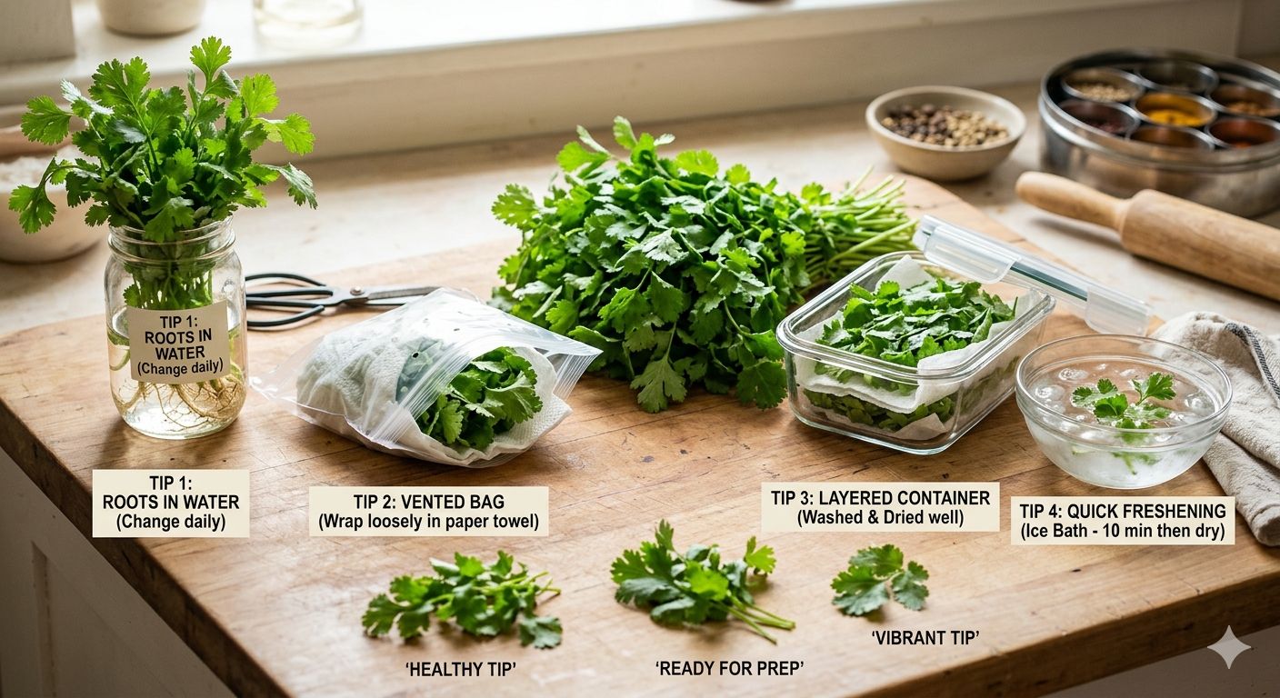 चलिए जानते हैं धनिया को लंबे समय तक फ्रेश रखने की आसान ट्रिक्स.