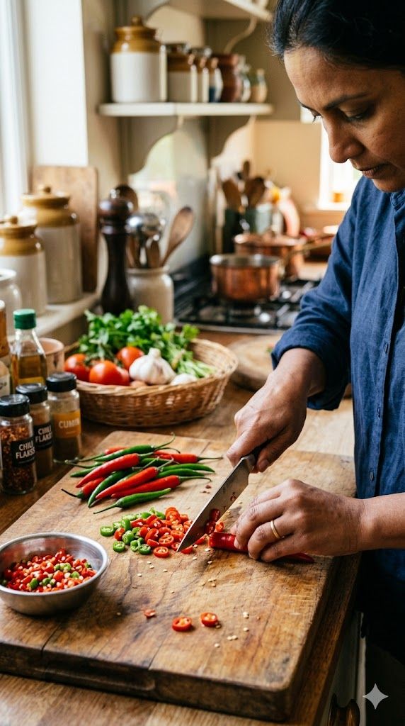 सावधानी के तौर पर आप मिर्च काटते हुए दस्ताने पहने जिससे कैप्सेसिन के संपर्क में स्किन न आए.